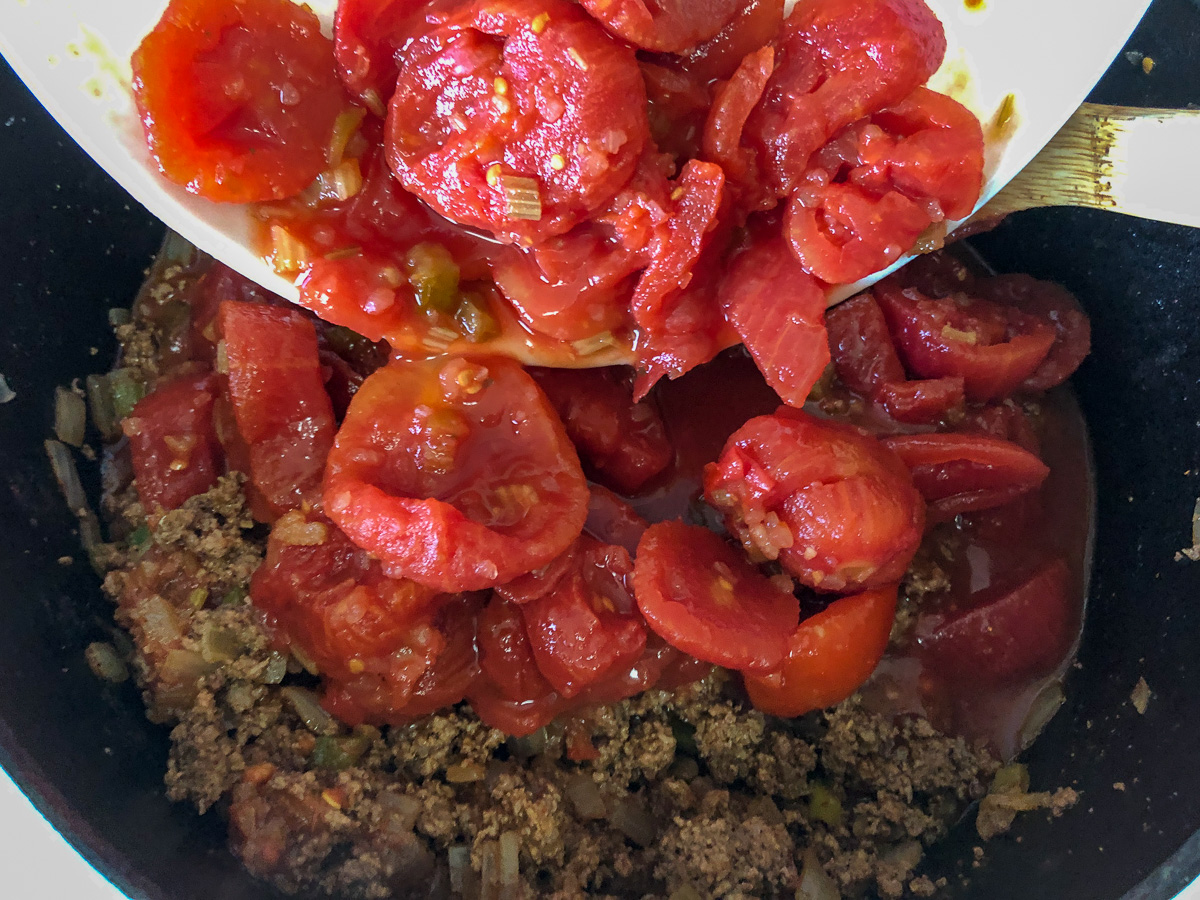 - Step 3: Add the Tomatoes. Reduce the heat to low. Pour in the salsa followed by the stewed tomatoes.