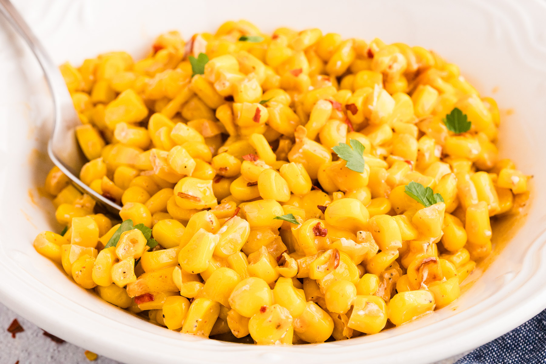 - Parmesan Herb Skillet Corn: Add a quarter cup of grated Parmesan and a teaspoon of Italian seasoning to the sauce in step 3. Garnish with fresh basil instead of parsley.