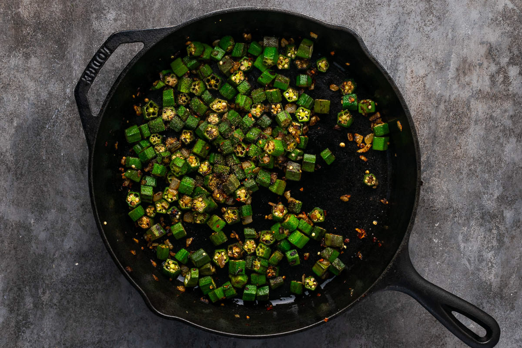 - Let the okra sit for a few minutes before stirring for a better sear.