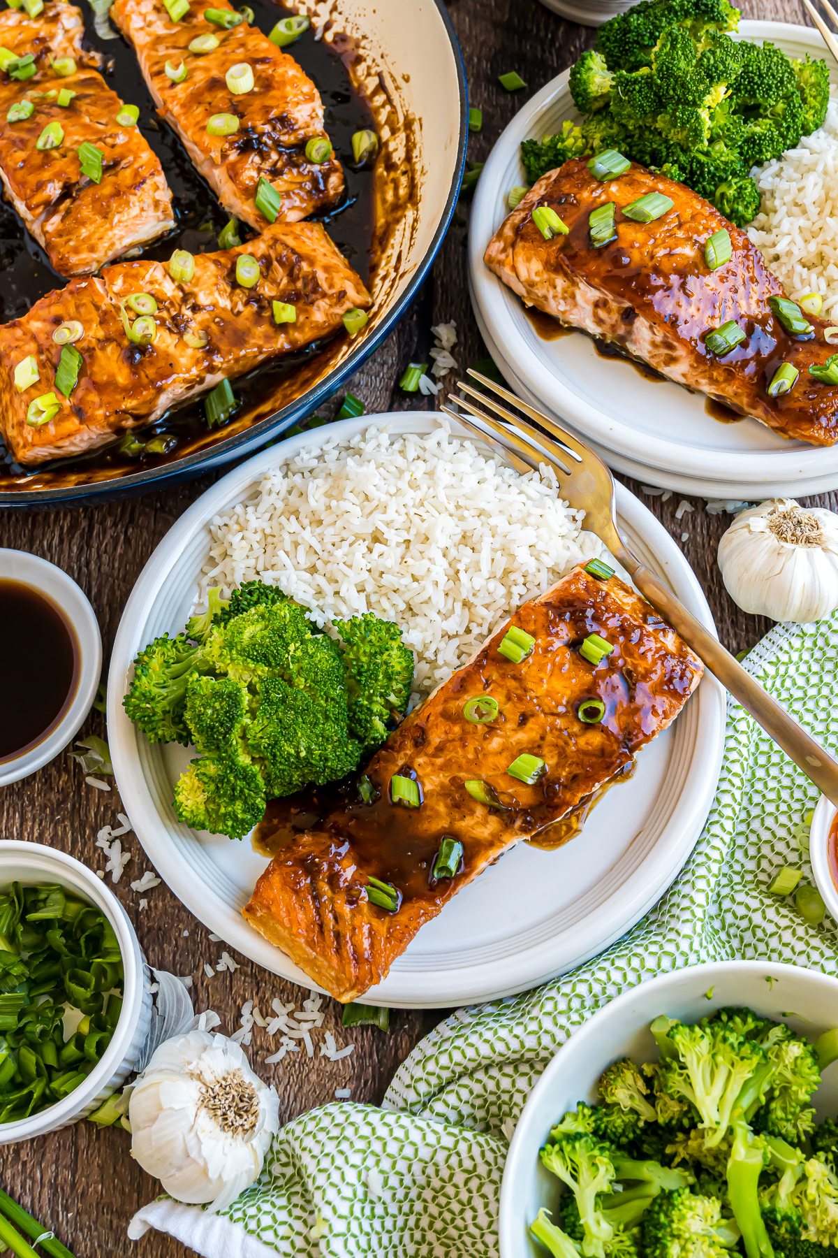 - Step 4: Brush and Serve. Brush each salmon fillet with the warm glaze, sprinkle with scallion greens, and serve!